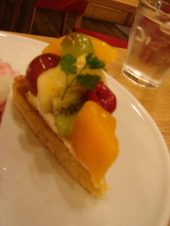 お気に入りのカフェにて。 スタンダードなフルーツタルト。 いや、フルーツが多すぎ!?