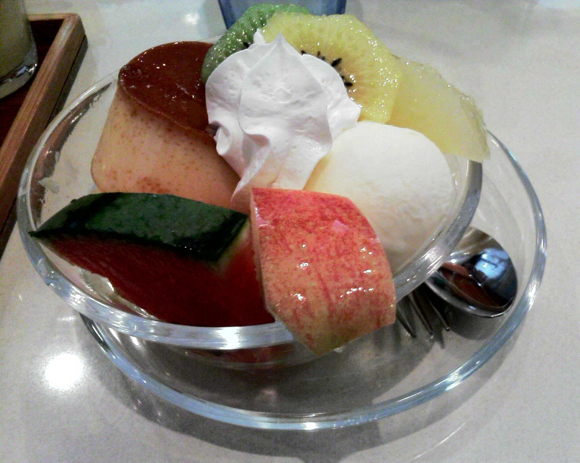 素朴なプリンの味と 冷たいスイカやアイスなどが夏らしくてうれしい一品