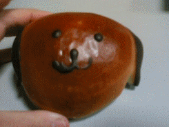 犬の形のパン。 一個一個、チョコで描かれた顔の表情が違います。 でもどれもおいしいことは変わらない