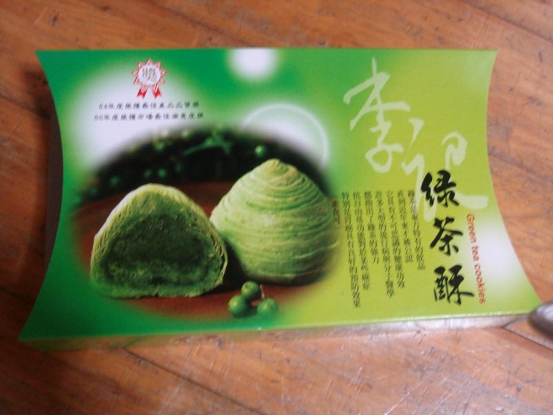 台湾土産のお茶のお菓子。 あんこにもお茶が練りこまれています。 中の餡子とサクサクの皮がいい感じ。