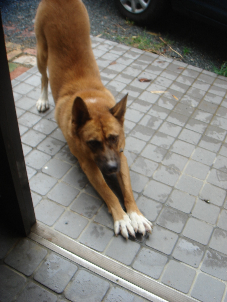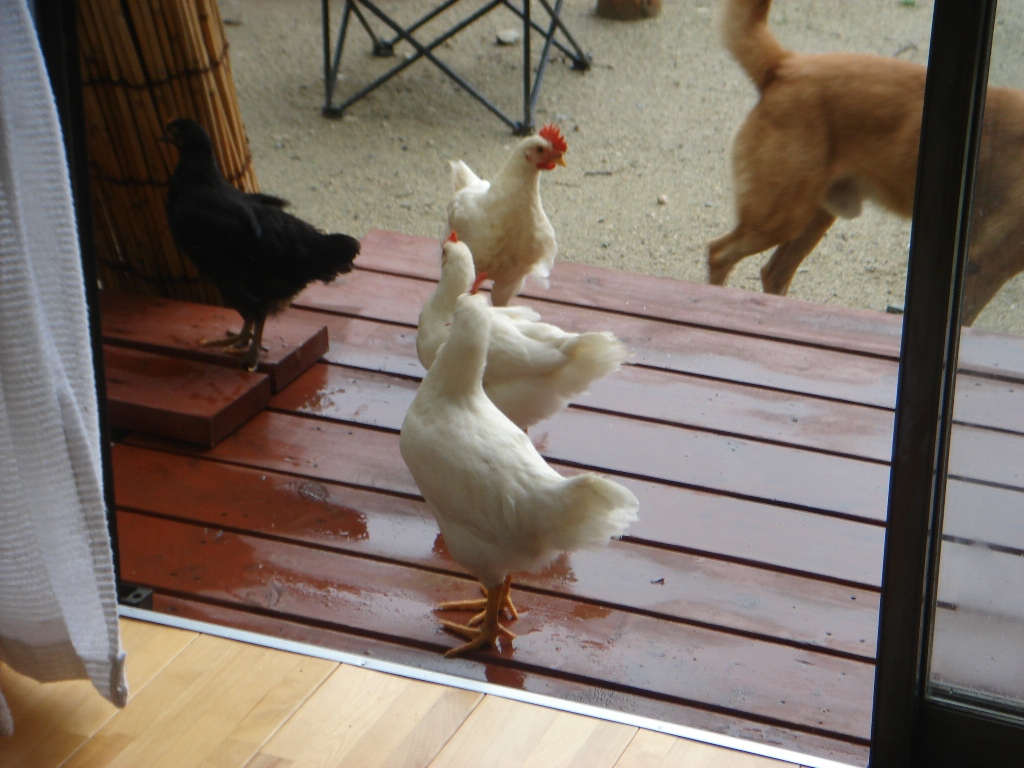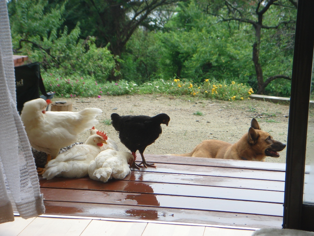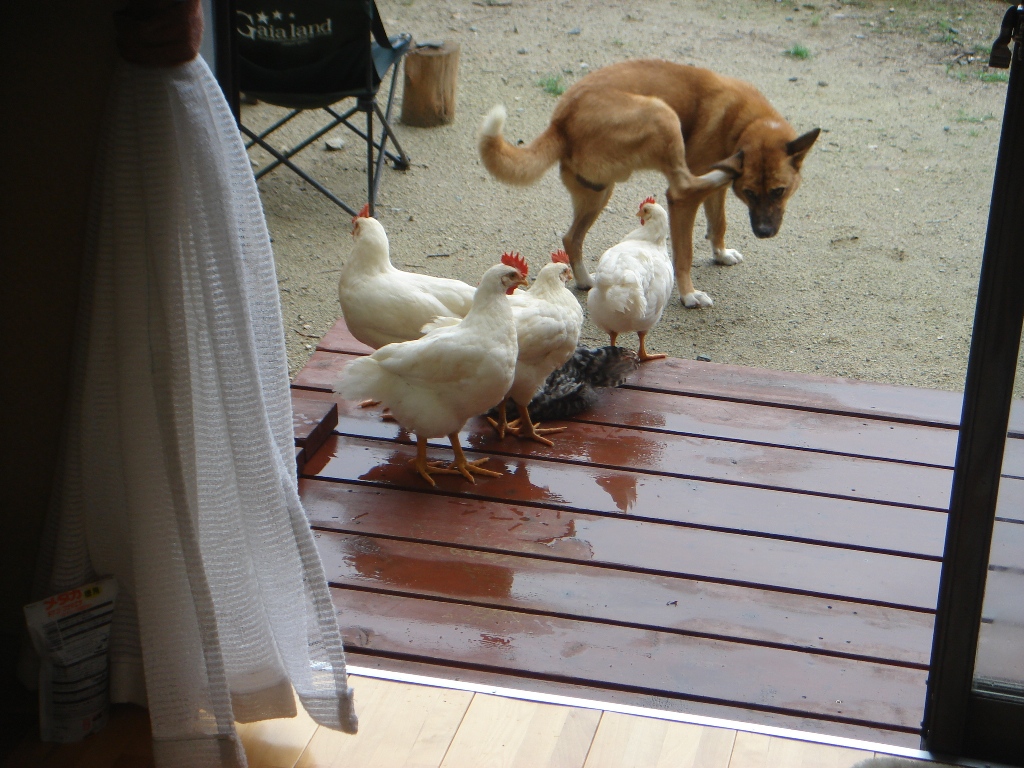 あふ~・ 今日は雨が降っています。 あの~、僕も濡れないようにそこに行きたいのですが・・・ ヒヨちゃん「な~にずうずうしいこと言ってるのよ(怒)」 「ひ~、すみません、退散します~!」 「本当は僕の定位置なのに・・・」 「い、いえ、なんでもありませ~~ん(泣)」 うとうと眠ってます。きもちよさそうです。 以上、わたくしチョビのレポートでお送りしました。 因みに反対側の縁側です。 ガラス戸がないとやつら侵入してきます。 コンポストときゃつらですです。 どうやらその中にいる、丸々太ったウジ虫を狙っているようです。 このあとあけてあげたら中に入って喜びの雄たけびを上げていました。 ・・・・ずっと出てこなければいいと思う (by チョビ)